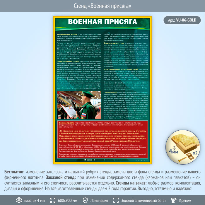 Стенд «Военная присяга» (VU-06-GOLD) в Бердске купить