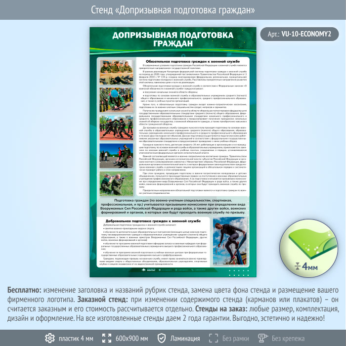 Стенд «Допризывная подготовка граждан» (VU-10-ECONOMY2) в Бердске купить