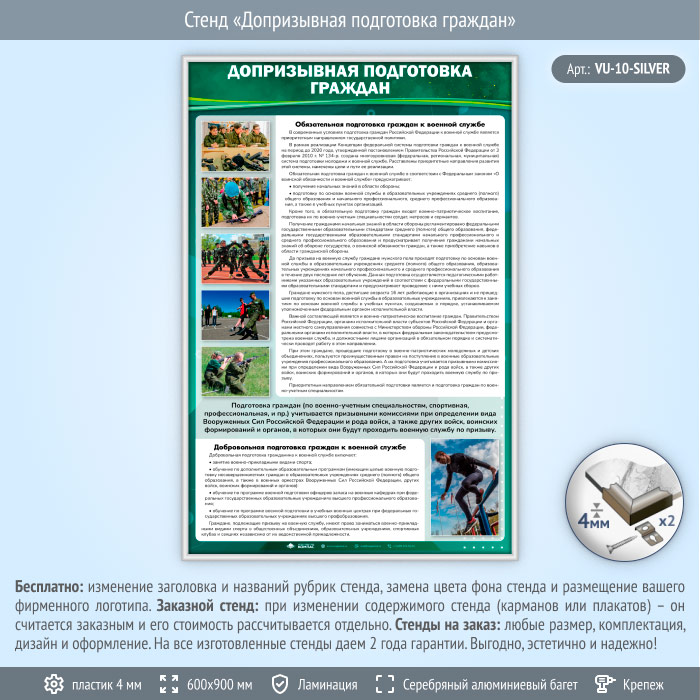 Стенд «Допризывная подготовка граждан» (VU-10-SILVER) в Бердске купить