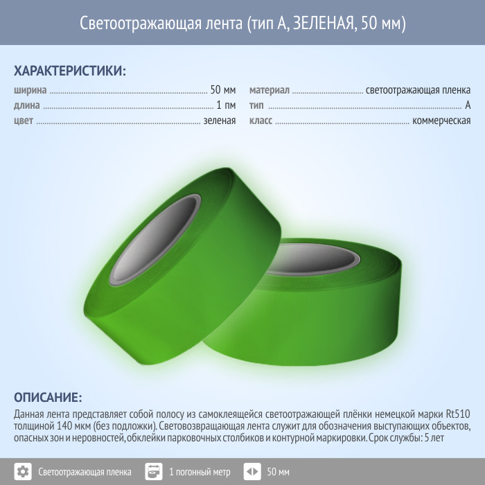 Светоотражающая однородная лента (тип А, ЗЕЛЕНАЯ, 50 мм х 1 п.м.) в Бердске купить