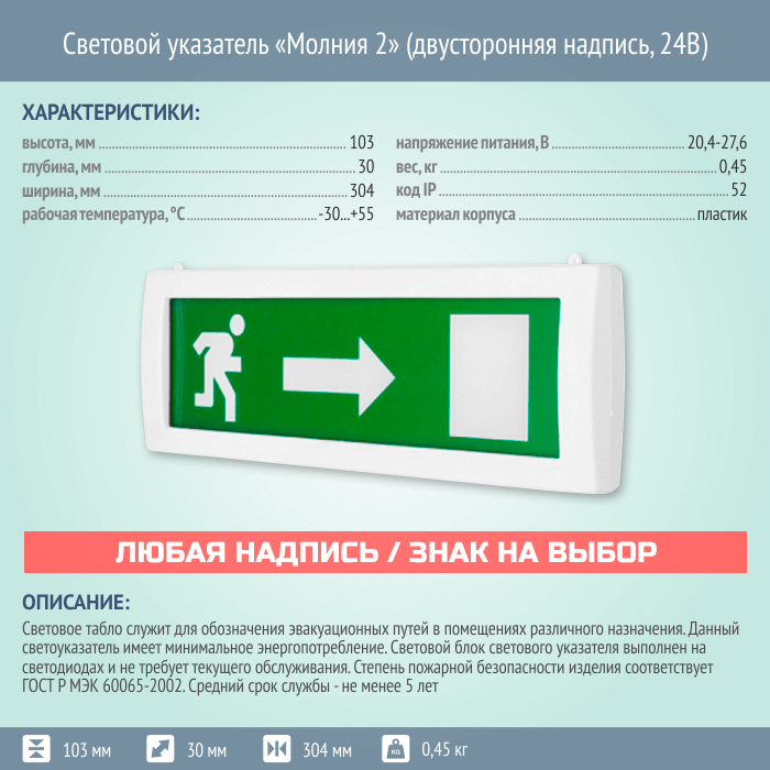Световой указатель Молния 2 (двусторонняя надпись, 12В) в Бердске купить