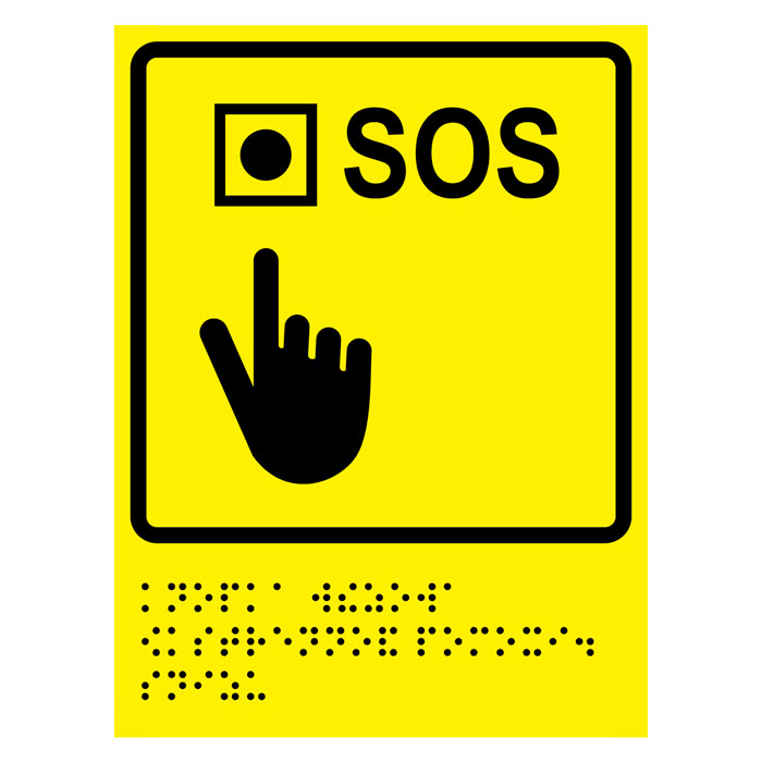 Тактильная пиктограмма «Кнопка вызова экстренной помощи» с азбукой Брайля, ДС66 (полистирол 3 мм, 150х225 мм) в Бердске купить