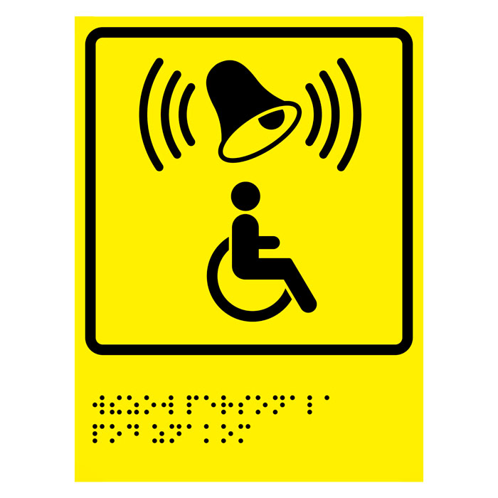 Тактильная пиктограмма «Кнопка вызова персонала» с азбукой Брайля, ДС65 (пленка, 200х300 мм) в Бердске купить