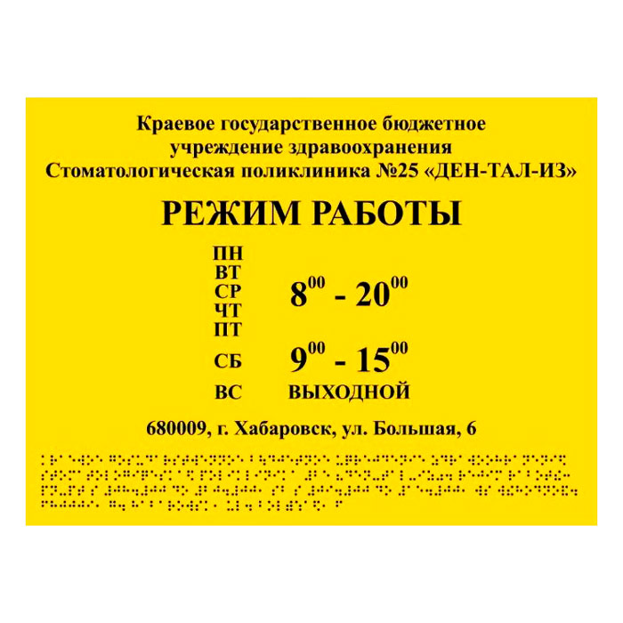 Тактильная вывеска с дублированием азбукой Брайля, ДС12 (полистирол 3 мм, 400х300 мм) в Бердске купить