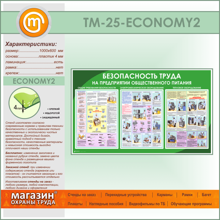 Стенд «Безопасность труда на предприятиях общественного питания» (TM-25-ECONOMY2) в Бердске купить