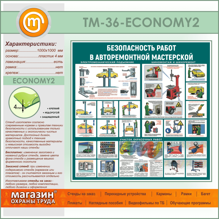 Стенд «Безопасность работ в авторемонтной мастерской» (TM-36-ECONOMY2) в Бердске купить