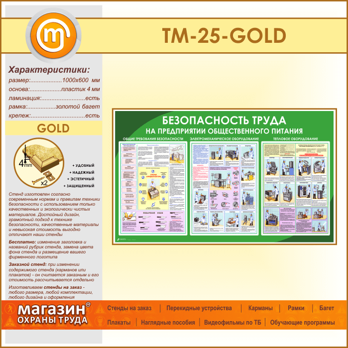 Стенд «Безопасность труда на предприятиях общественного питания» (TM-25-GOLD) в Бердске купить