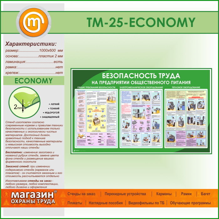 Стенд «Безопасность труда на предприятиях общественного питания» (TM-25-ECONOMY) в Бердске купить