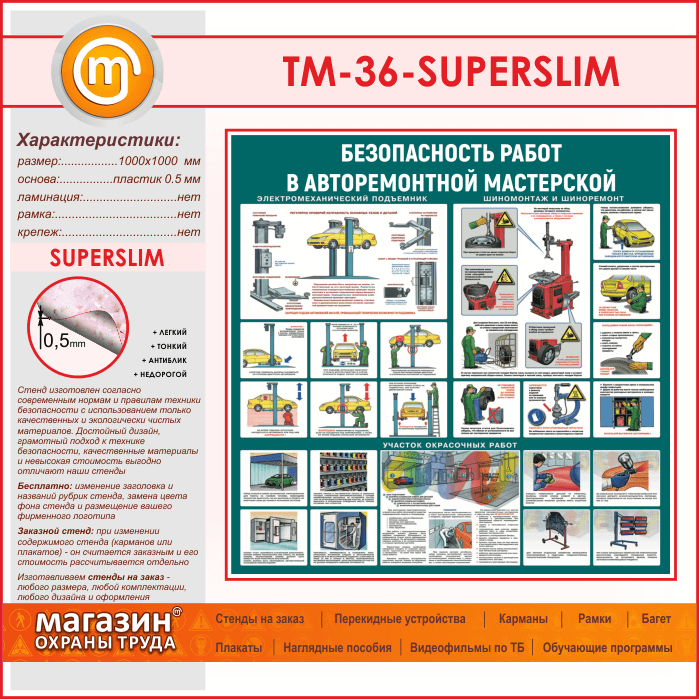Стенд «Безопасность работ в авторемонтной мастерской» (TM-36-SUPERSLIM) в Бердске купить
