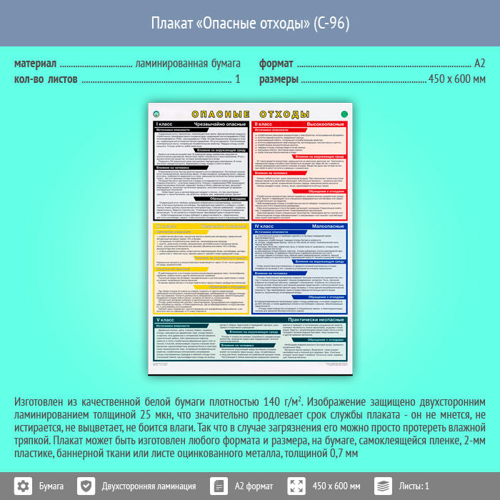 Плакат «Опасные отходы» (С-96, ламинированная бумага, А2, 1 лист) в Бердске купить