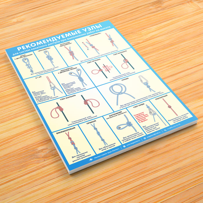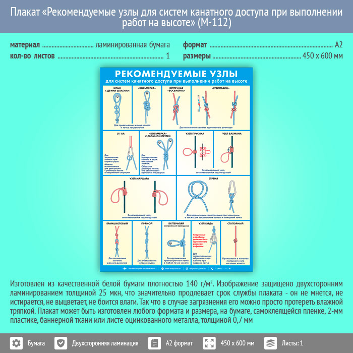 Плакат «Рекомендуемые узлы для систем канатного доступа при выполнении работ на высоте» (М-112, ламинированная бумага, А2, 1 лист) в Бердске купить