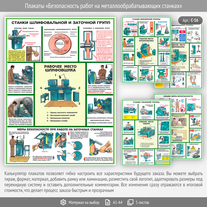 Плакат «Безопасность работ на металлообрабатывающих станках» (С-16, 5 листов) в Бердске купить