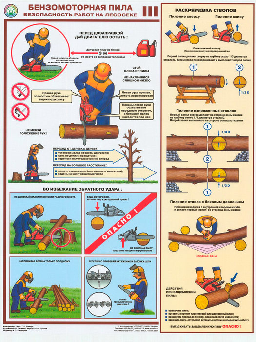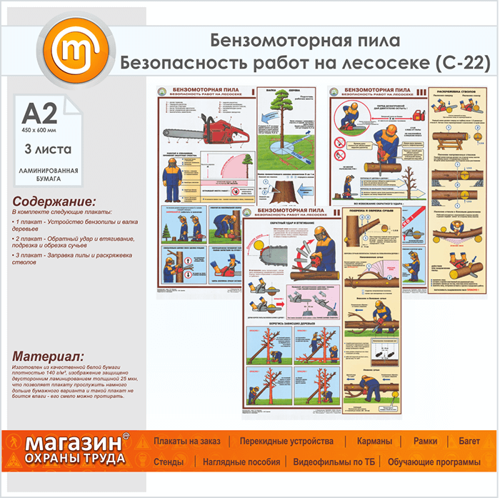Плакаты «Бензомоторная пила. Безопасность работ на лесосеке» (С-22, ламинированная бумага, А2, 3 листа) в Бердске купить