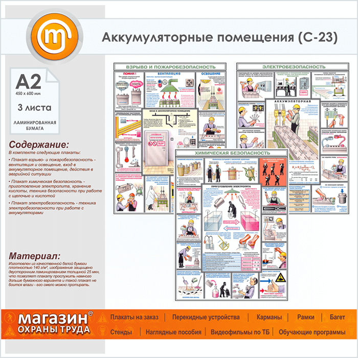 Плакаты «Аккумуляторные помещения» (С-23, ламинированная бумага, А2, 3 листа) в Бердске купить