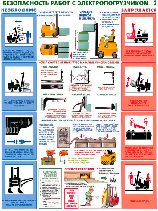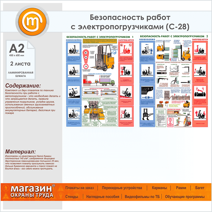 Плакаты «Безопасность работ с электропогрузчиками» (С-28, ламинированная бумага, А2, 2 листа) в Бердске купить