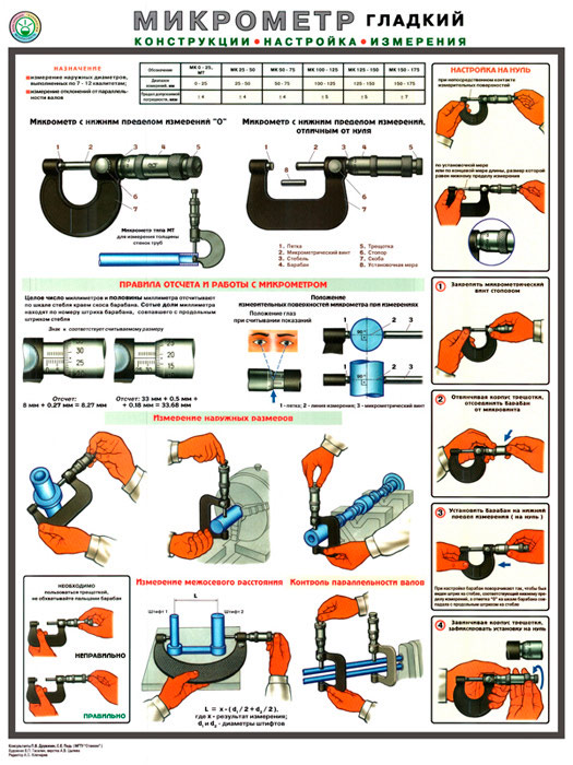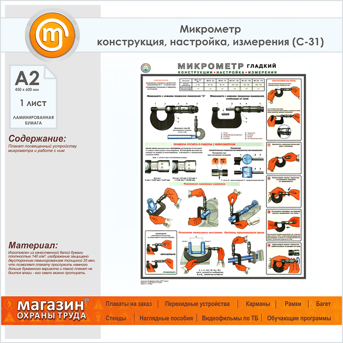 Плакат «Микрометр - конструкция, настройка, измерения» (С-31, ламинированная бумага, А2, 1 лист) в Бердске купить