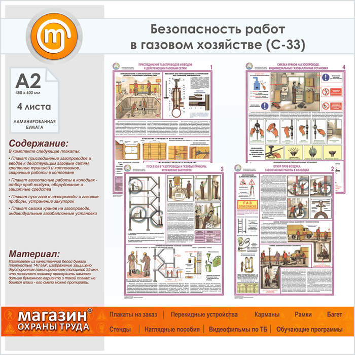 Плакаты «Безопасность работ в газовом хозяйстве» (С-33, ламинированная бумага, А2, 4 листа) в Бердске купить