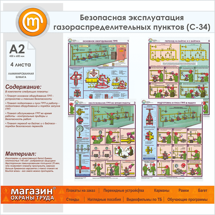 Плакаты «Безопасная эксплуатация газораспределительных пунктов» (С-34, ламинированная бумага, А2, 4 листа) в Бердске купить