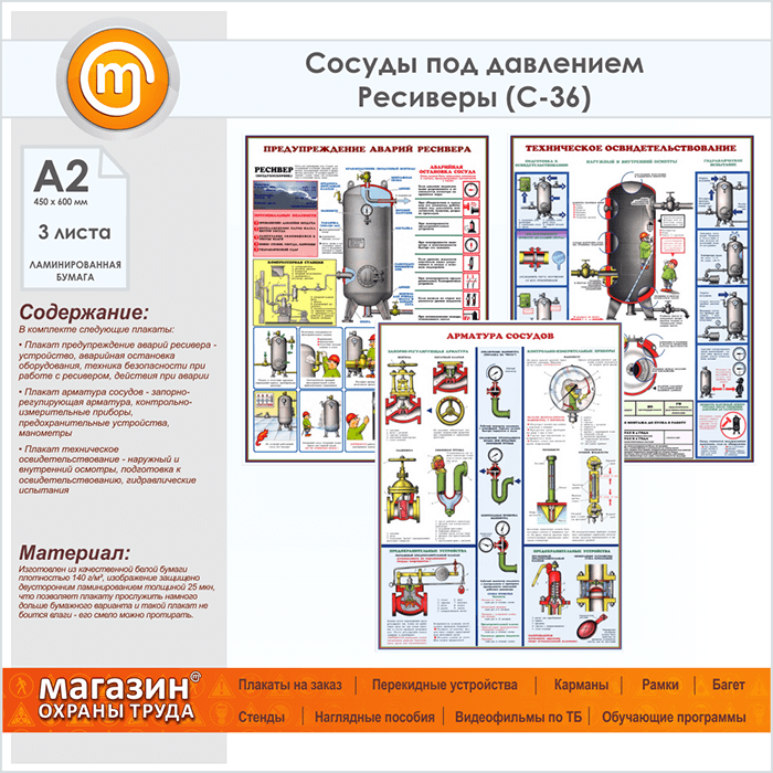 Плакаты «Сосуды под давлением. Ресиверы» (С-36, ламинированная бумага, А2, 3 листа) в Бердске купить