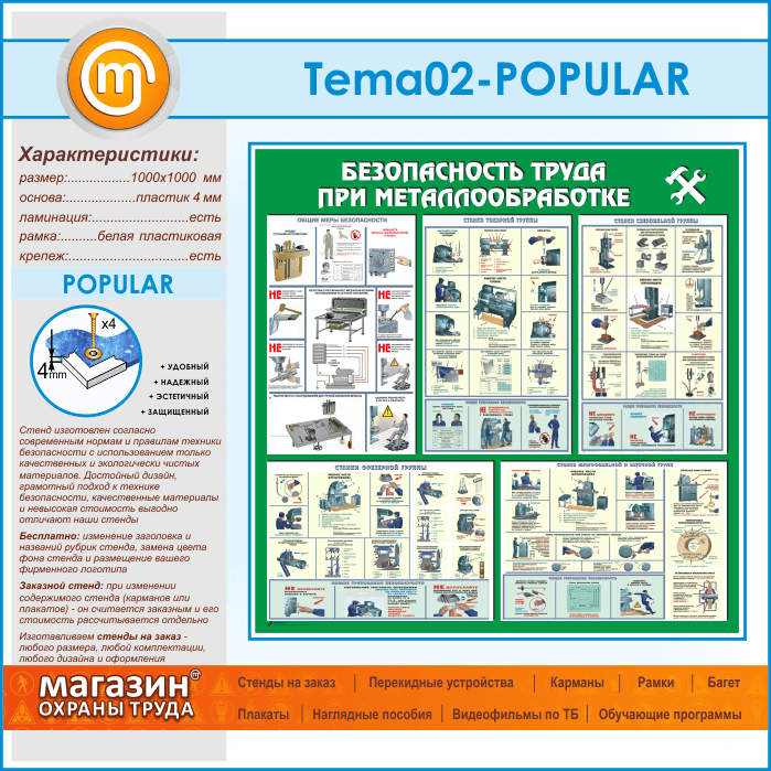 Стенд «Безопасность труда при металлообработке» (TM-02-POPULAR) в Бердске купить