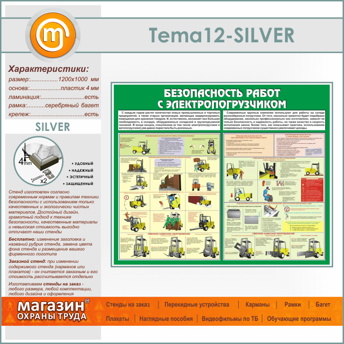 Стенд «Безопасность работ с электропогрузчиком» (TM-12-SILVER) в Бердске купить