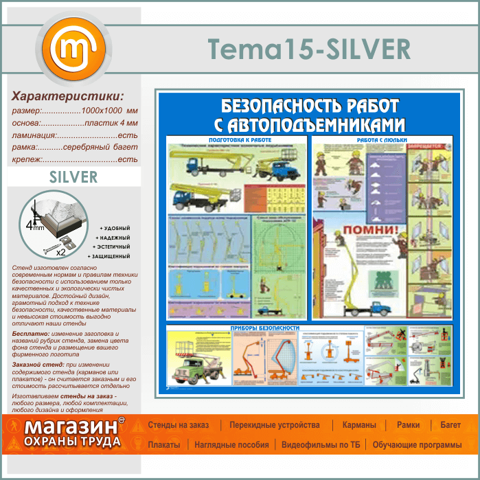 Стенд «Безопасность работ с автоподъемниками» (TM-15-SILVER) в Бердске купить