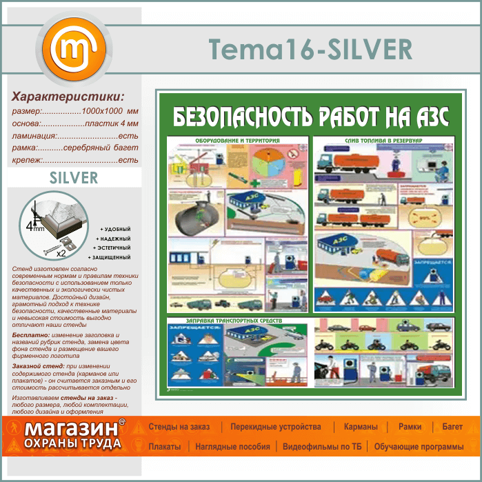 Стенд «Безопасность работ на автозаправочных станциях» (TM-16-SILVER) в Бердске купить