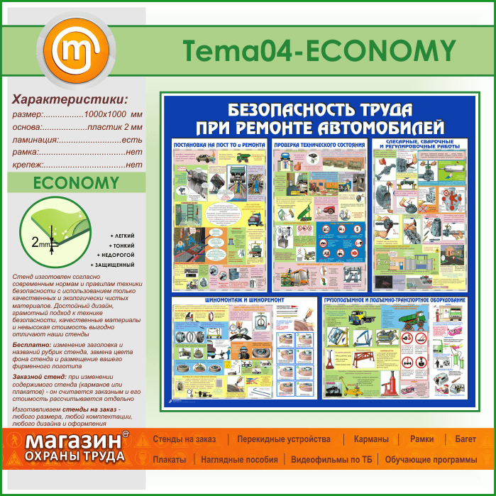 Стенд «Безопасность труда при ремонте автомобилей» (TM-04-ECONOMY) в Бердске купить
