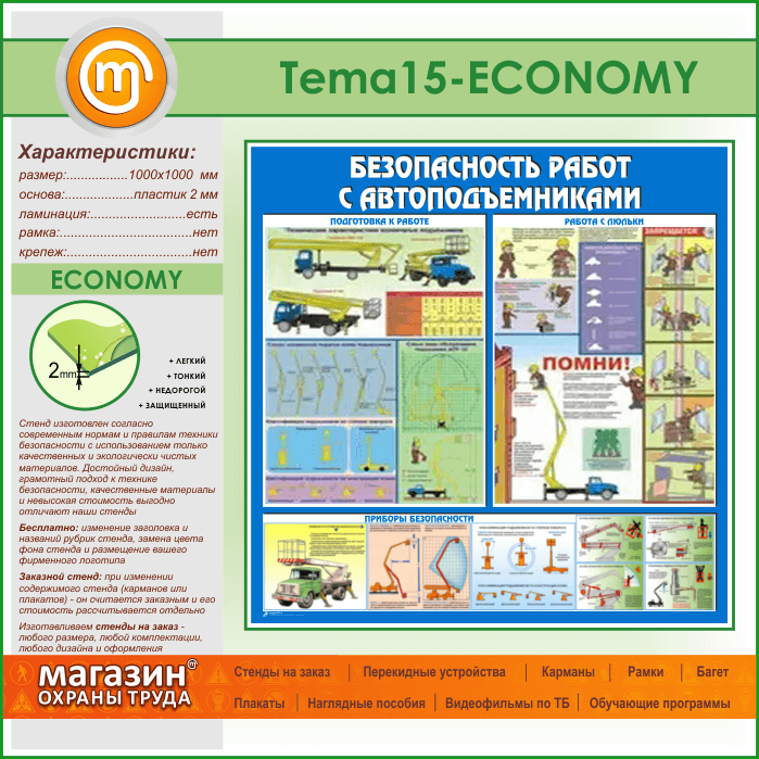 Стенд «Безопасность работ с автоподъемниками» (TM-15-ECONOMY) в Бердске купить