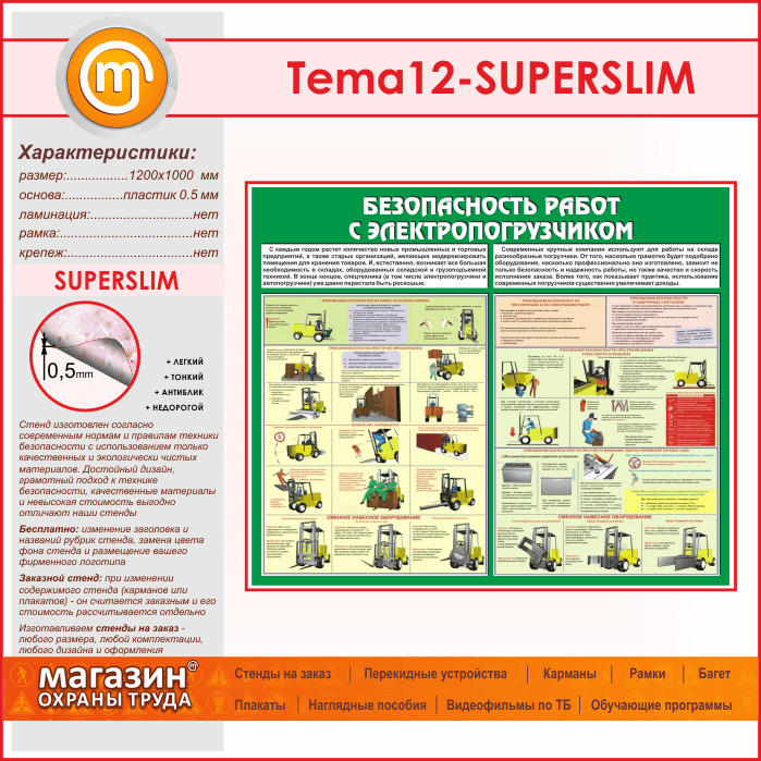 Стенд «Безопасность работ с электропогрузчиком» (TM-12-SUPERSLIM) в Бердске купить