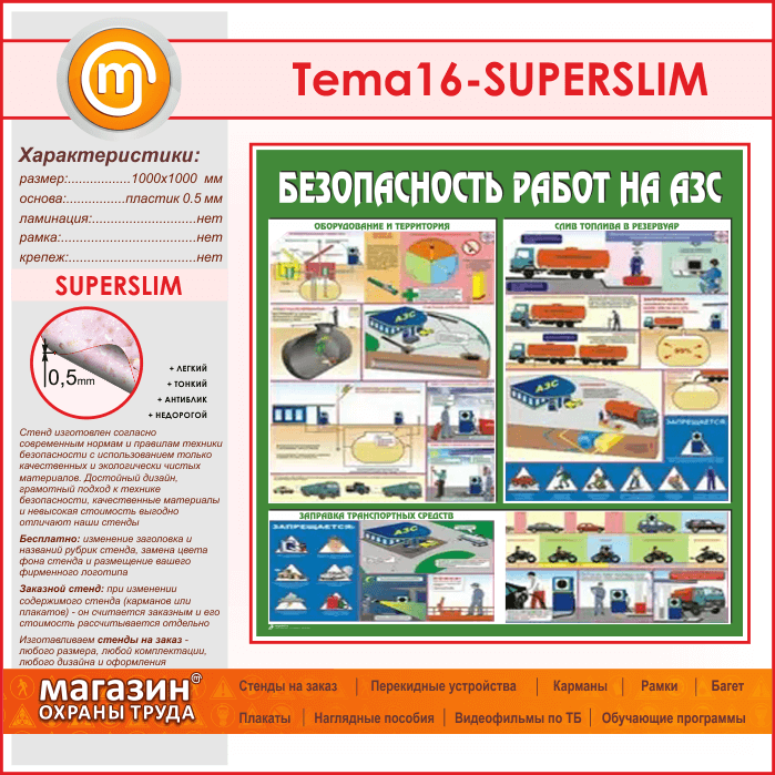 Стенд «Безопасность работ на автозаправочных станциях» (TM-16-SUPERSLIM) в Бердске купить