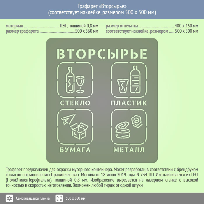 Трафарет «Вторсырье» (соответствует наклейке, размером 500х500 мм) в Бердске купить