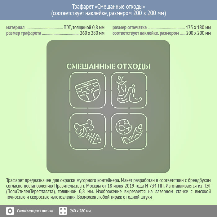 Трафарет «Смешанные отходы» (соответствует наклейке, размером 200х200 мм) в Бердске купить