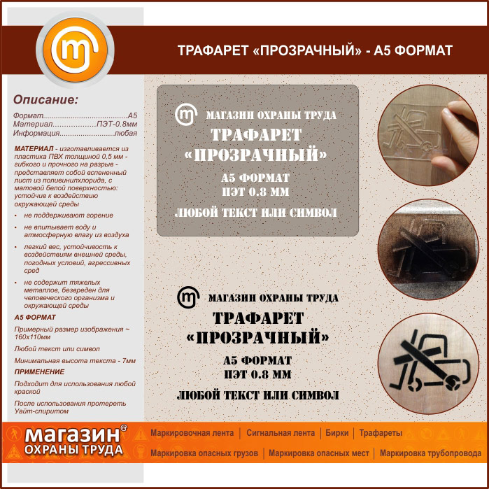 Трафарет «ПРОЗРАЧНЫЙ» (А5 формат, ПЭТ 0,8 мм) в Бердске купить
