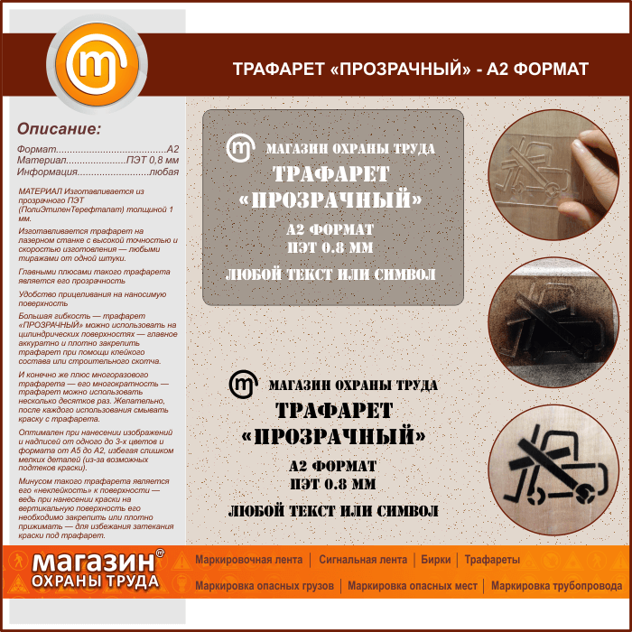 Трафарет «ПРОЗРАЧНЫЙ» (А2 формат, ПЭТ 0,8 мм) в Бердске купить