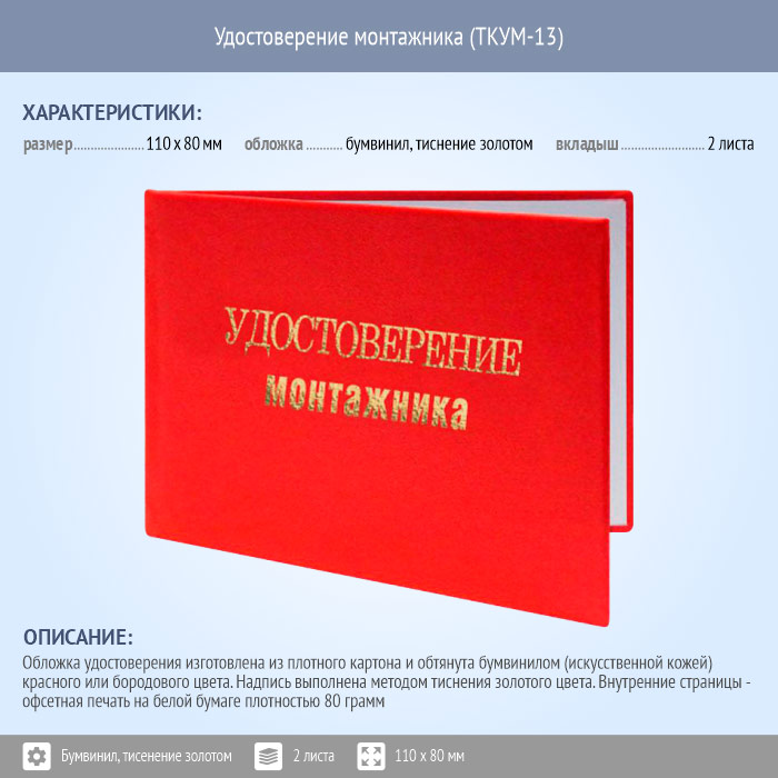 Бланк удостоверения монтажника (ТКУМ-13) в Бердске купить