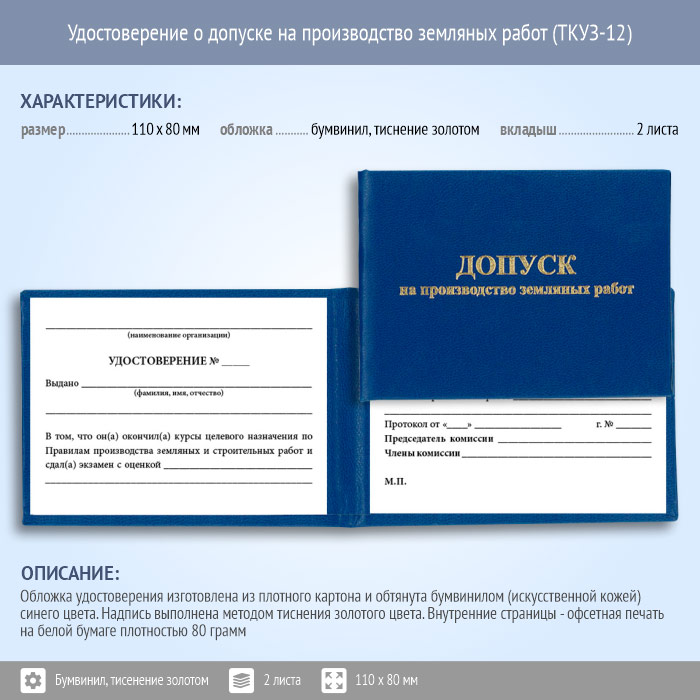 Бланк удостоверения о допуске на производство земляных работ (ТКУЗ-12) в Бердске купить