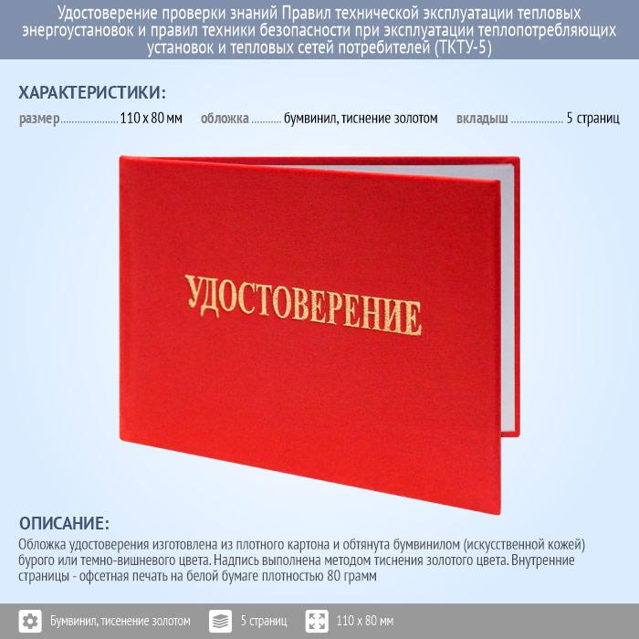 Бланк удостоверения проверки знаний Правил технической эксплуатации тепловых энергоустановок и правил техники безопасности при эксплуатации теплопотребляющих установок и тепловых сетей потребителей (ТКТУ-5) в Бердске купить