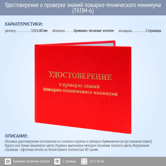 Бланк удостоверения о проверке знаний пожарно-технического минимума (ТКПМ-6) в Бердске купить