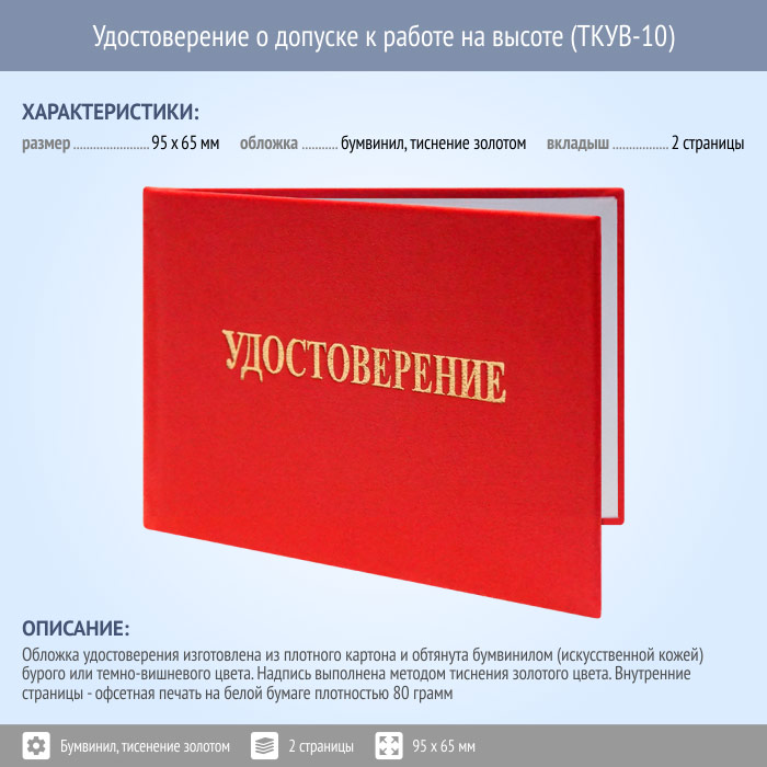 Бланк удостоверения о допуске к работе на высоте (ТКУВ-10) в Бердске купить