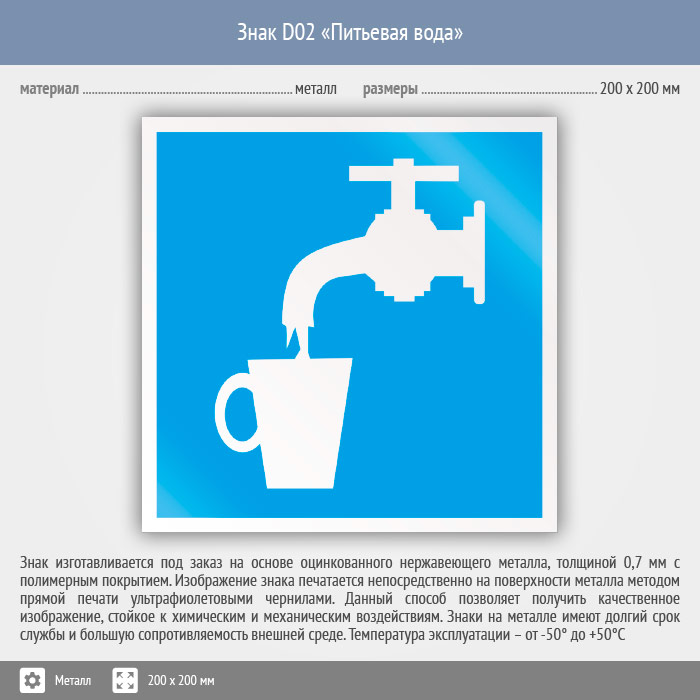 Знак D02 «Питьевая вода» (металл, 200х200 мм) в Бердске купить