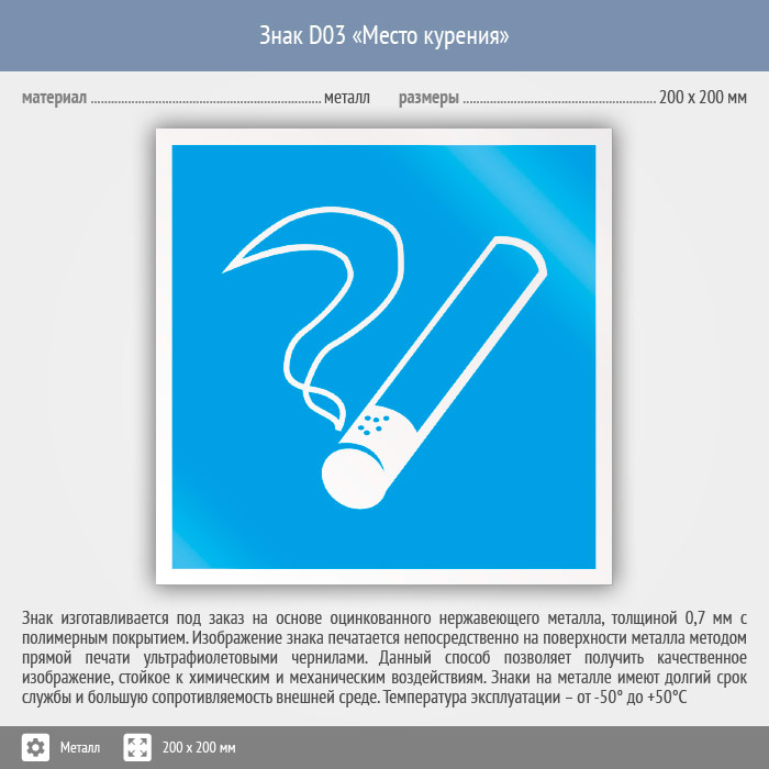 Знак D03 «Место курения» (металл, 200х200 мм) в Бердске купить
