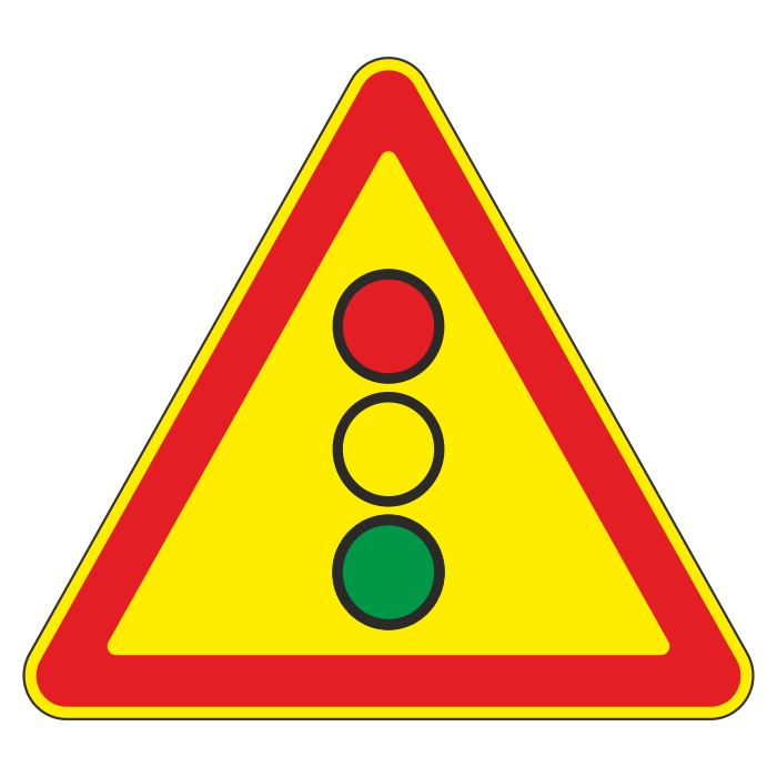 Дорожный знак 1.8 «Светофорное регулирование» (временный) (металл 0,8 мм, II типоразмер: сторона 900 мм, С/О пленка: тип А коммерческая) в Бердске купить