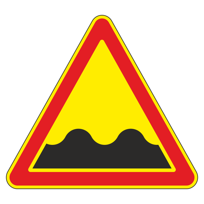 Дорожный знак 1.16 «Неровная дорога» (временный) (металл 0,8 мм, II типоразмер: сторона 900 мм, С/О пленка: тип А коммерческая) в Бердске купить