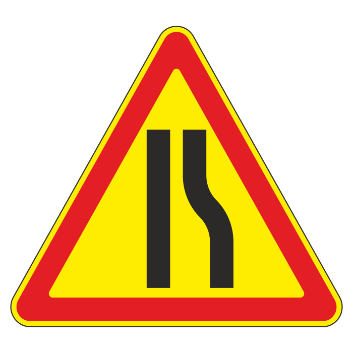 Дорожный знак 1.20.2 «Сужение дороги» (временный) (металл 0,8 мм, I типоразмер: сторона 700 мм, С/О пленка: тип Б высокоинтенсивная) в Бердске купить
