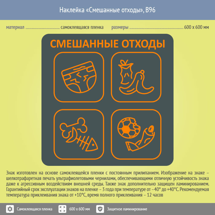 Наклейка на бак «Смешанные отходы», B96 (пленка c ламинированием, 600х600 мм) в Бердске купить