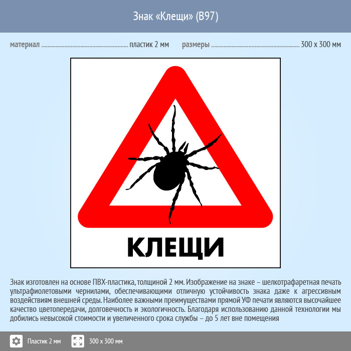 Знак «Клещи», B97 (пластик, 200х200 мм) в Бердске купить