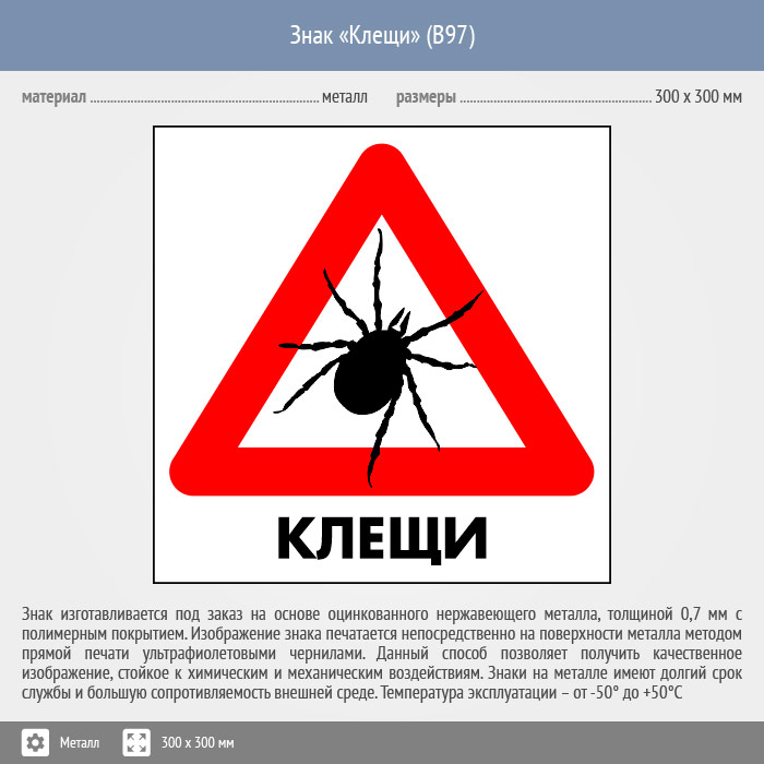 Знак «Клещи», B97 (металл, 200х200 мм) в Бердске купить