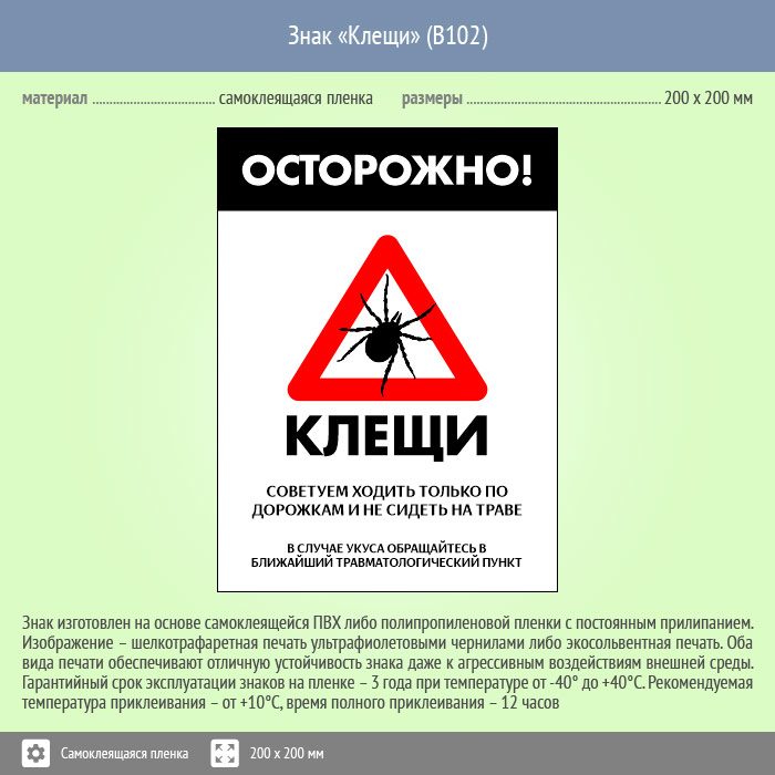 Знак «Осторожно! Клещи», B102 (пленка, 400х600 мм) в Бердске купить