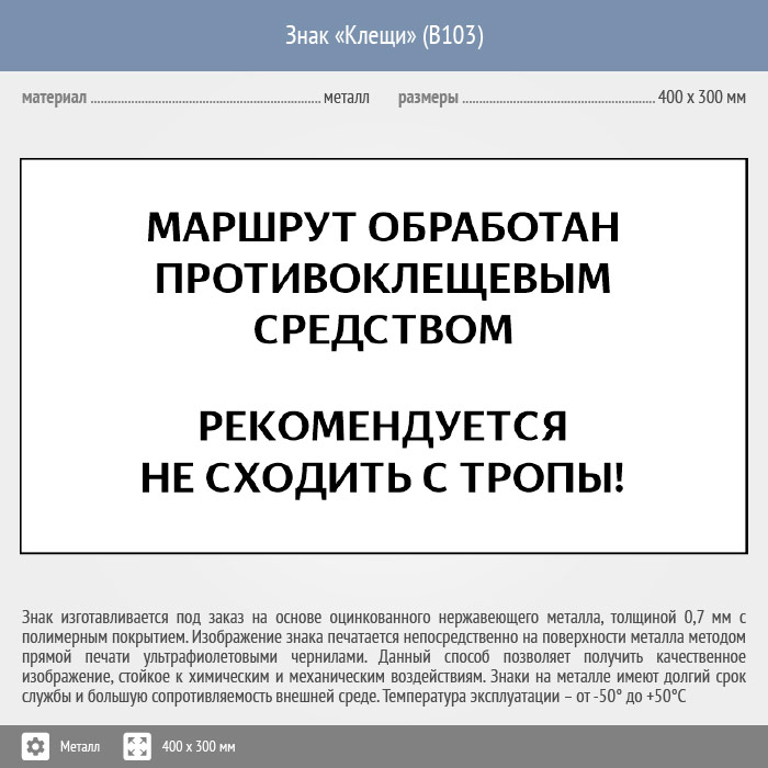 Знак «Клещи», B103 (металл, 300х200 мм) в Бердске купить